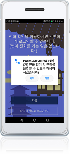 Ponta JAPAN Wi-Fi 로 전화 통화 및 관리가 가능하도록 허용해 주시고 Ponta JAPAN Wi-Fi 에서 이 기기의 위치에 접속할 수 있도록 허용해 주십시오.