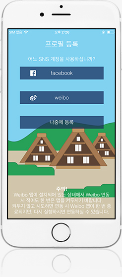 Facebook 또는 Weibo를 선택하여 등록하십시오. SIM에 따라서는 이 부분을 생략할 수 있습니다.