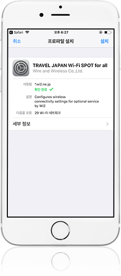 일본에서 Wi-Fi 스팟을 이용하려면 프로필을 설정해야 합니다. 표시되는 지침에 따라 주십시오.
