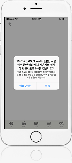 앱을 사용하지 않을 때에도 Ponta JAPAN Wi-Fi가 위치에 접근할 수 있도록 허용해 주시고 Ponta JAPAN Wi-Fi 에서 알림을 보낼 수 있도록 허용해 주십시오.